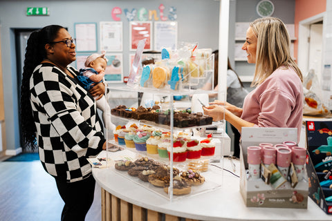 This is us celebration our grand opening in 2019. We started out as an imaginary play village, serving all our wonder customers with amazing local coffee, whilst their little ones played.